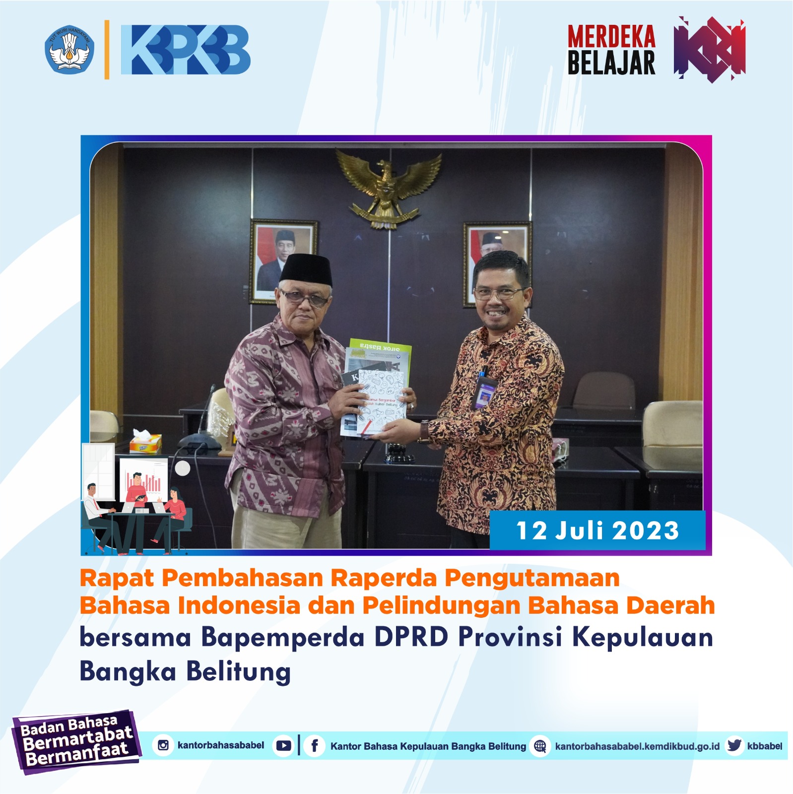 Kantor Bahasa Provinsi Kepulauan Bangka Belitung menyelenggarakan Bimbingan Teknis Pemberdayaan Komunitas Penggerak Literasi pada 25—27 Juli di Hotel Aston Soll Marina. Acara yang merupakan tindak lanjut dari program Pemutakhiran Profil Komunitas Literasi Tahun 2023 ini diikuti oleh 30 peserta. Para peserta merupakan pengurus komunitas literasi di berbagai kabupaten di Pulau Bangka. Komunitas literasi yang dimaksud…